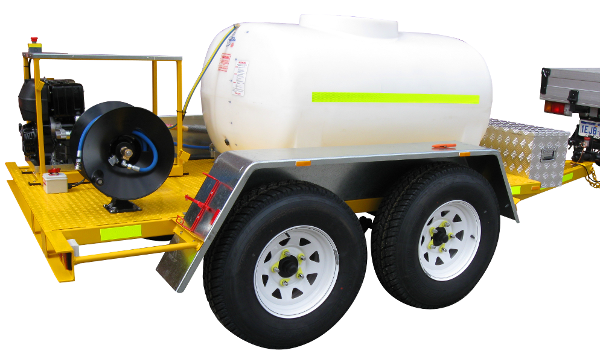 Purpose built heavy duty 'Off Road' tandem trailer, 1200Ltr tank, self contained Yanmar Diesel powered 3000PSI high pressure cleaner.